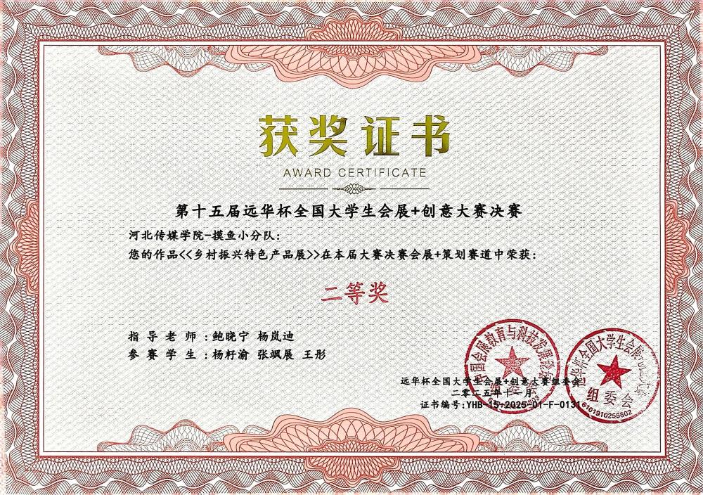 11月7日至9日,第十五届“远华杯”全国大学生会展+创意大赛决赛在广州清远成功举办。作为全国会展专业领域极具影响力的赛事,本届大赛吸引了来自全国87所高校的464支队伍同台竞技,并最终筛选出113支队伍晋级决赛。我校学生凭借出色的综合表现在决赛中斩获多项荣誉:河北传媒学院获教学成果一等奖,“新星之火队”《首届河北文化旅游博览会》、“星河队”《第二十三届中国玩具展》摘得一等奖,其余队伍斩获二等奖5项。